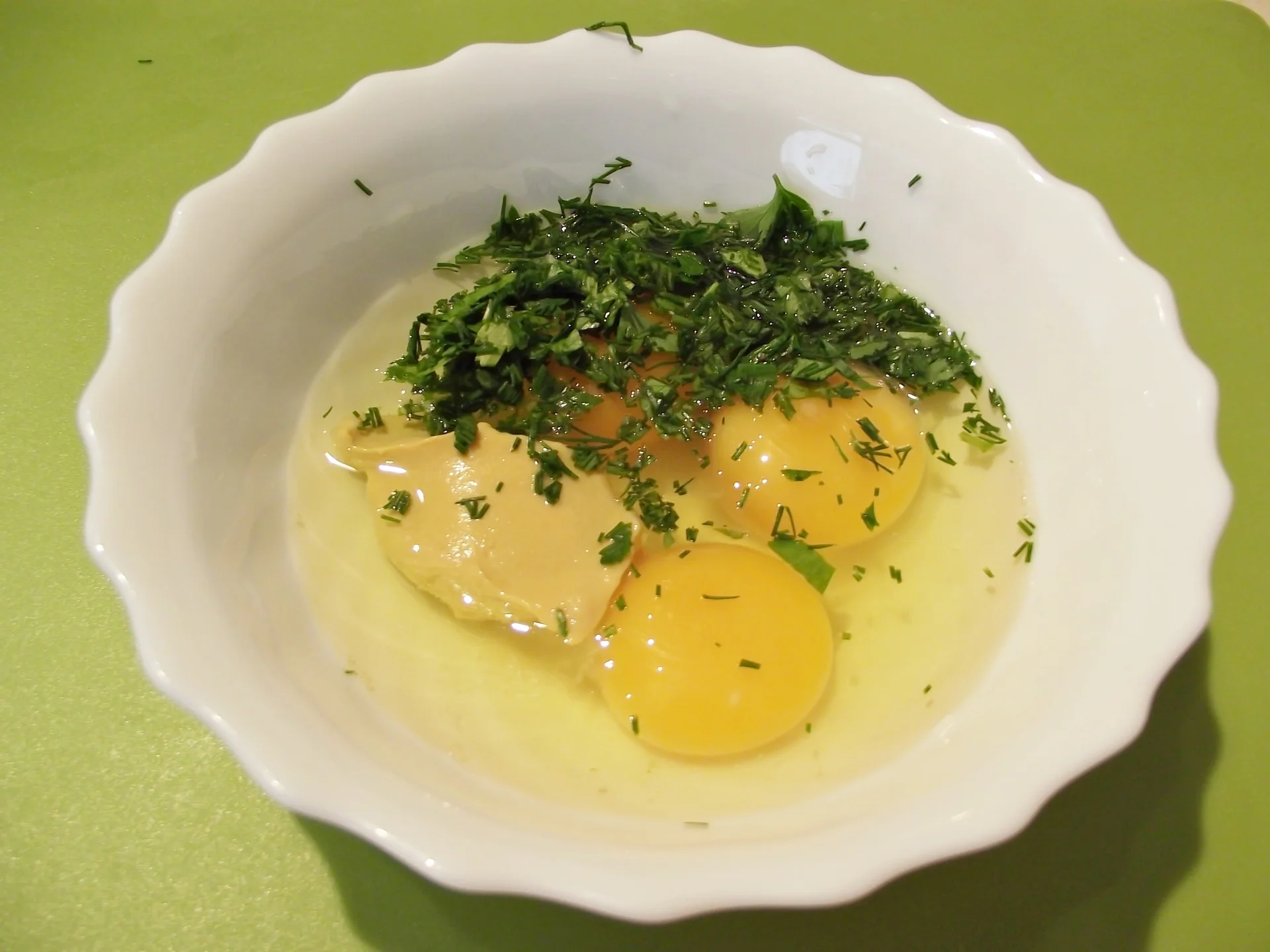 Preparing the omelette takes… EN: View full recipe: Omelette roll with herbs and homemade sausage