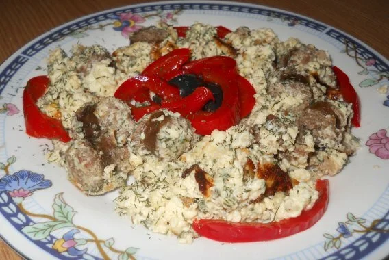 Omelette with Telemea Cheese and Homemade Sausages