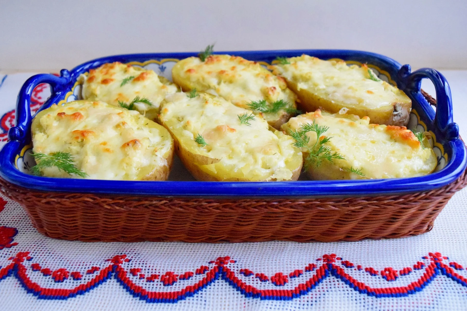 Oven-baked potatoes stuffed with cheese