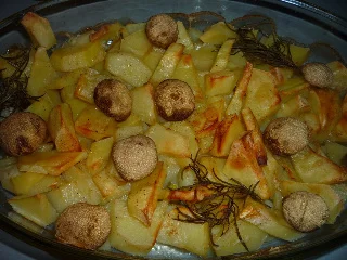 Potatoes with mushrooms and rosemary baked in the oven