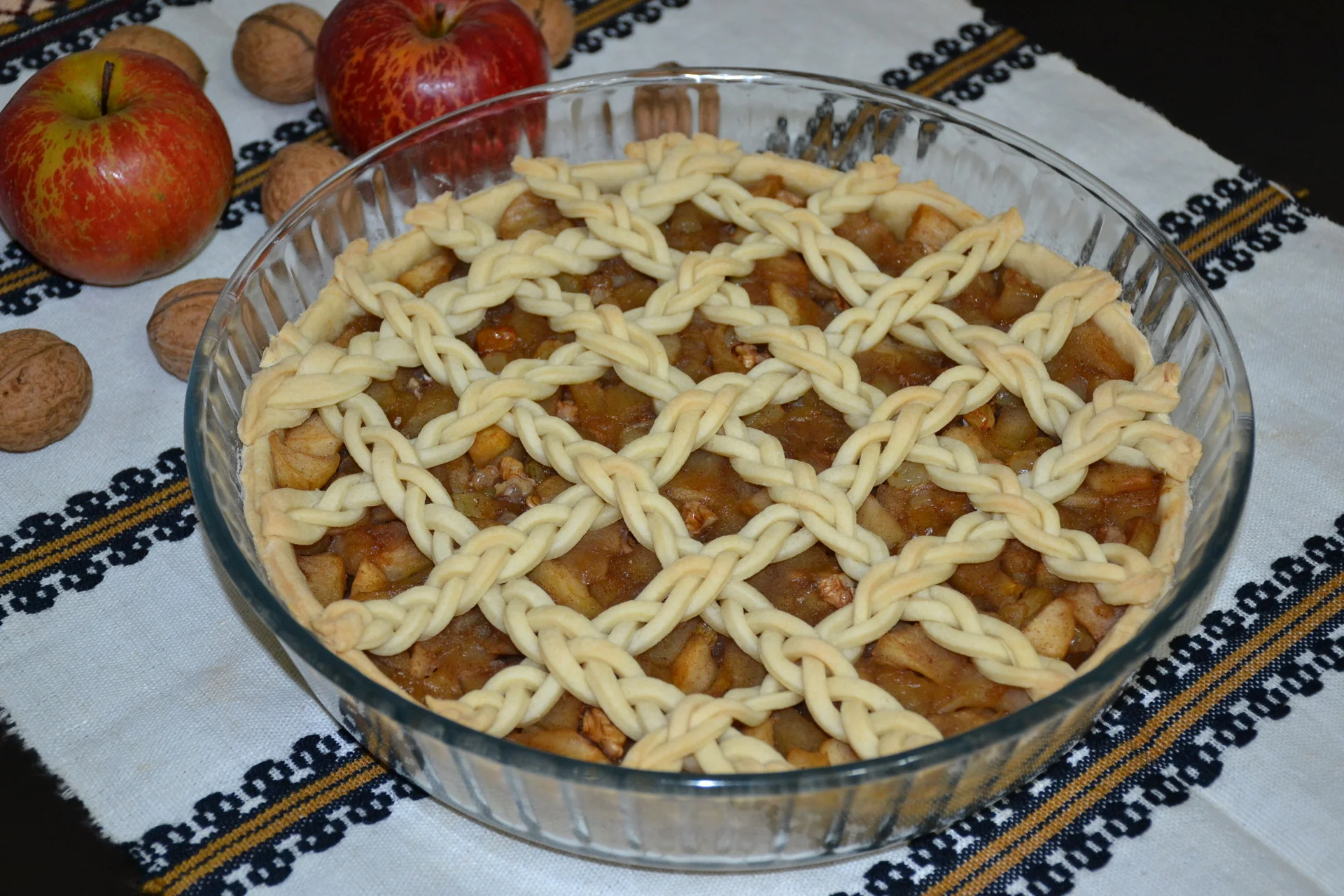 Apple pie with nuts and raisins