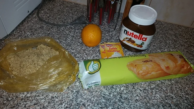 Delicious puff pastry crescents with chocolate and walnuts