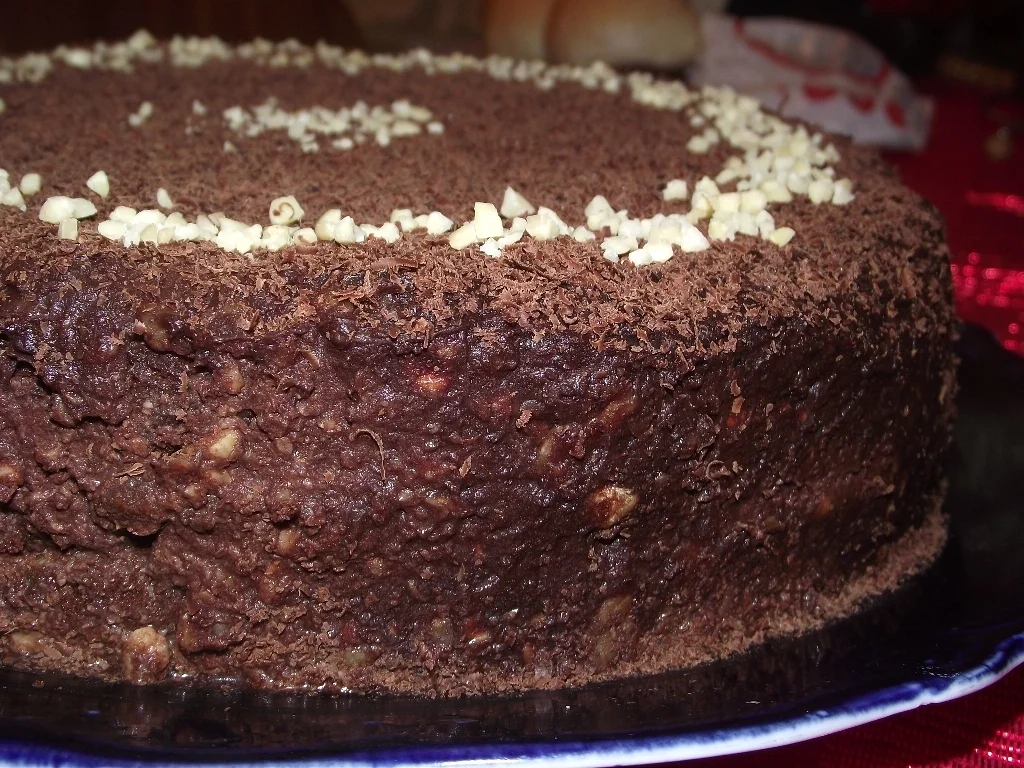 Classic cake with cocoa cream and walnut filling