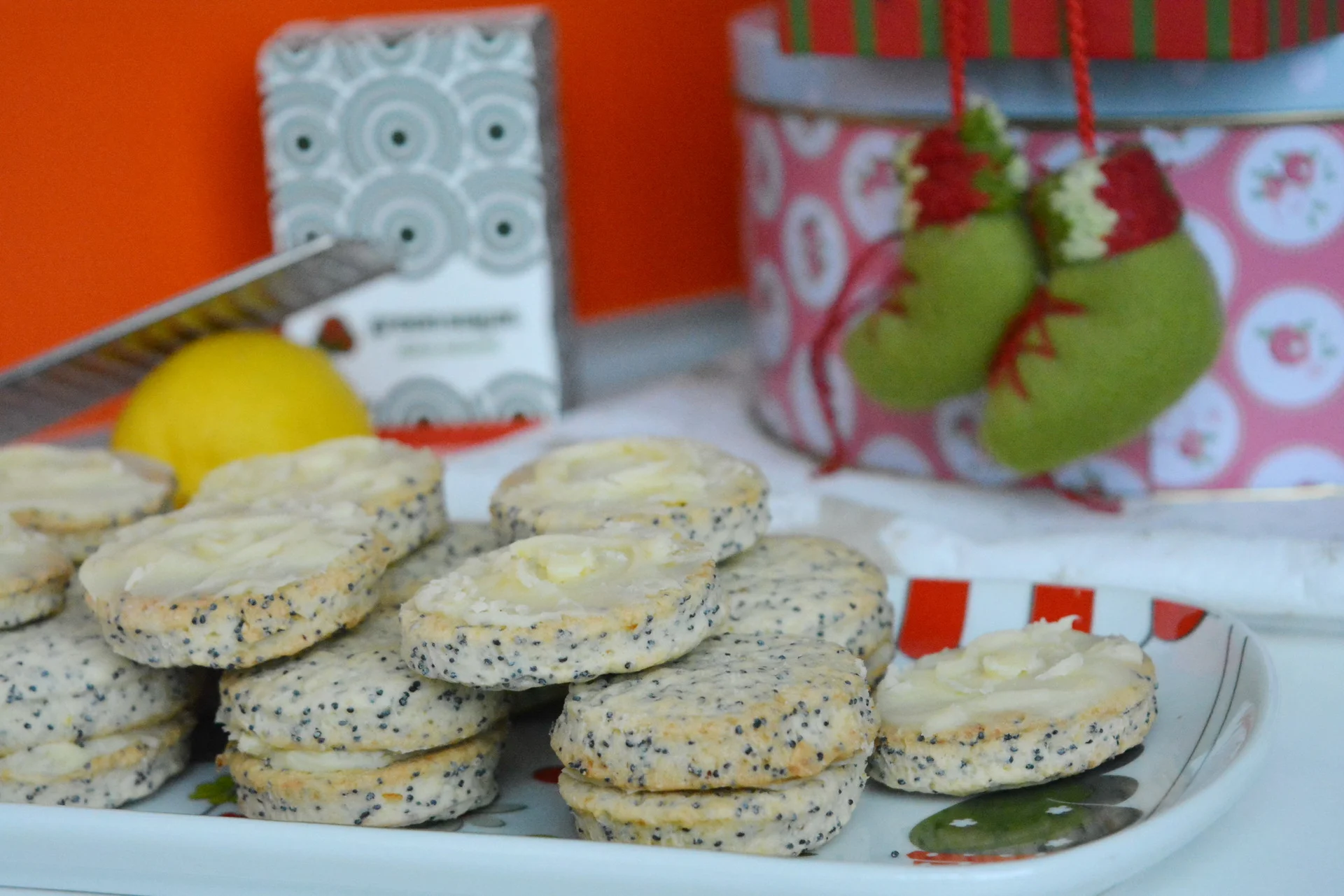 Cookies with poppy seeds and lemon cream with white chocolate and mascarpone