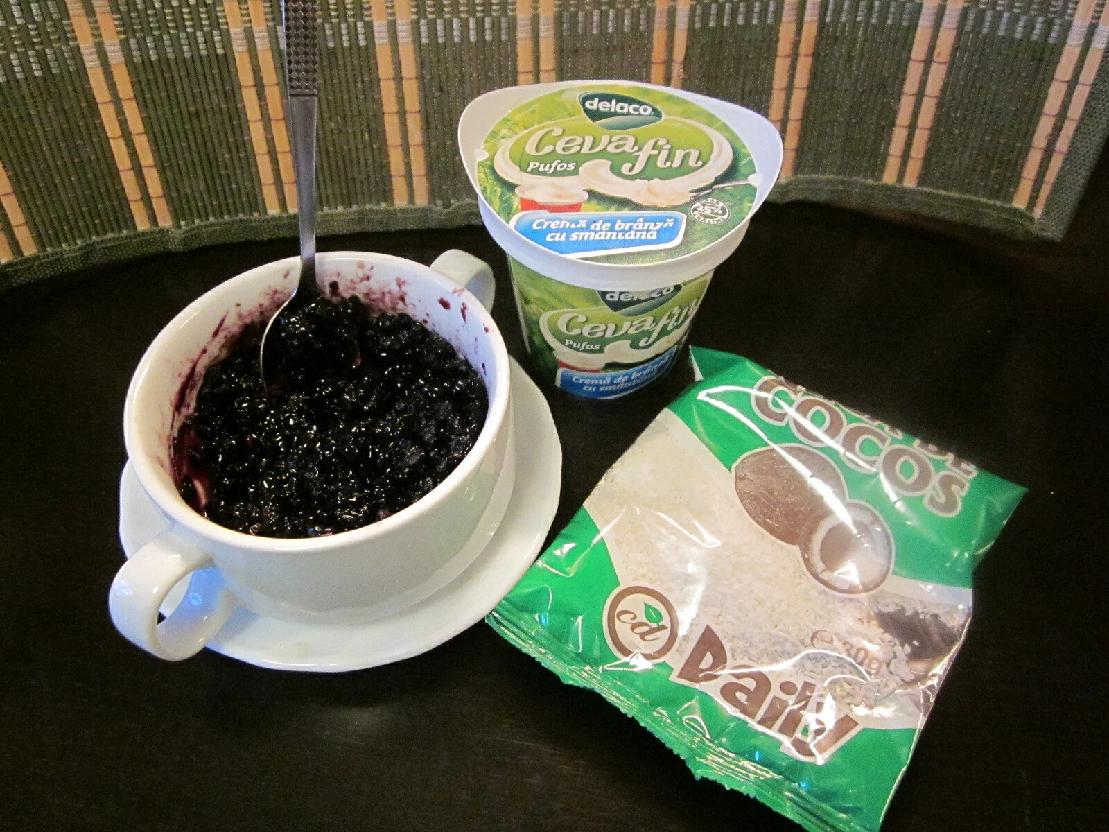 RO: Branzica cremoasa cu dulceata de afine si nuca de cocosES: Queso cremoso con mermelada de arándano y cocoFR: Fromage crémeux avec confiture de myrtilles et noix de cocoDE: Cremiger Käse mit Heidelbeermarmelade und KokosnussIT: Formaggio cremoso con marmellata di mirtilli e coccoPL: Kremowy ser z dżemem borówkowym i kokosemPT: Queijo cremoso com geleia de mirtilo e cocoTR: Krem peynir, yaban mersini reçeli ve hindistancevizi ileEL: Κρεμώδης τυρί με μαρμελάδα μύρτιλου και καρύδαRU: Кремовый сыр с голубикой и кокосомZH: 奶油奶酪配蓝莓果酱和椰子JA: クリーミーチーズとブルーベリージャム、ココナッツHI: क्रीमी चीज़, ब्लूबेरी जैम और नारियल के साथ