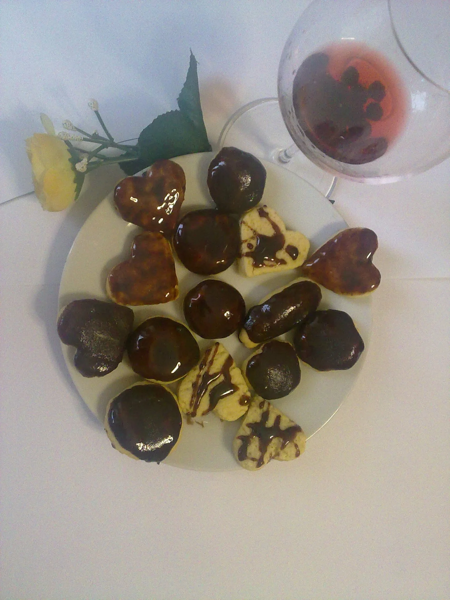 Hearts and buttons with lemon and chocolate glaze