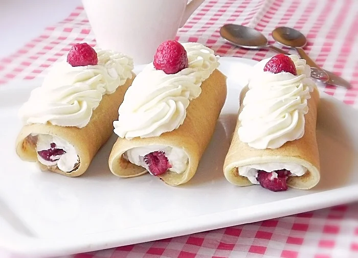 Delicious Pancakes with Mascarpone Cream and Raspberries