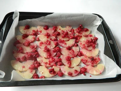 egg white cake with pineapple and raspberry