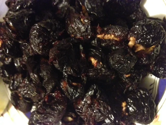 Recipe for Dried Plums Stuffed with Nuts in Red Wine