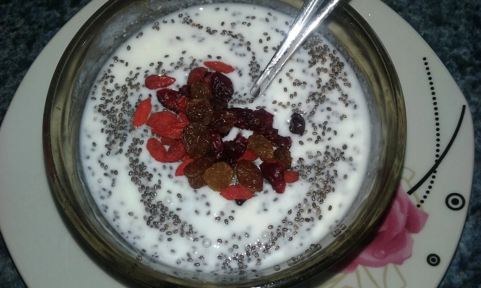 yogurt pudding with chia and dried fruits