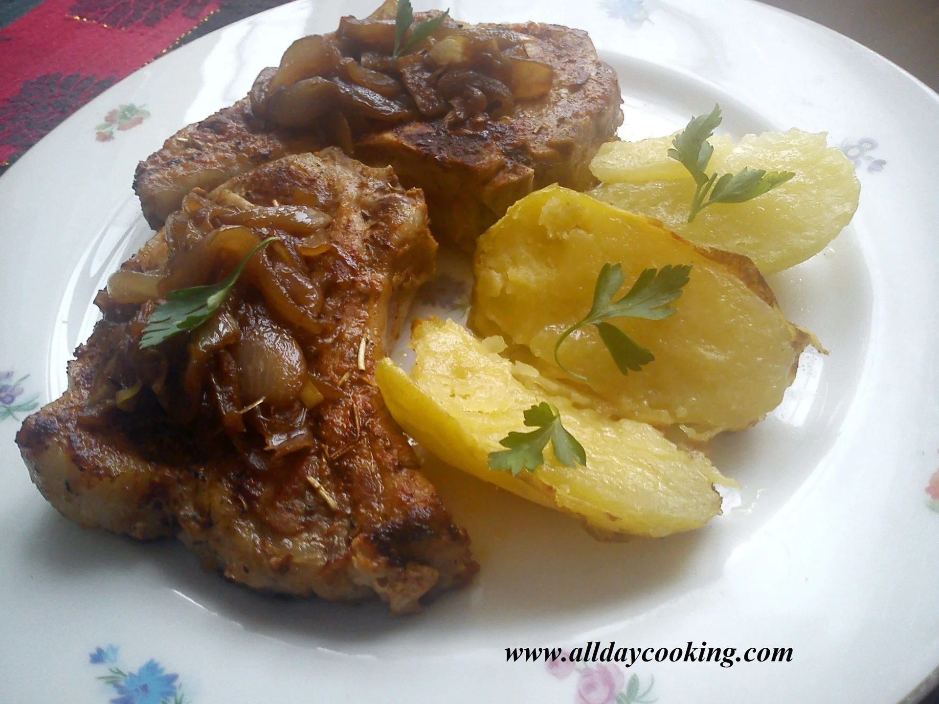 RO: Cotlet cu ceapa caramelizata si cartofi coptiES: Chuleta de cerdo con cebollas caramelizadas y patatas asadasFR: Côtelettes de porc avec oignons caramélisés et pommes de terre rôtiesDE: Schweinekotelett mit karamellisierten Zwiebeln und gerösteten KartoffelnIT: Costoletta di maiale con cipolle caramellate e patate arrostoPL: Kotlet schabowy z karmelizowaną cebulą i pieczonymi ziemniakamiPT: Costeleta de porco com cebolas caramelizadas e batatas assadasTR: Karamelize soğanlı ve fırınlanmış patatesli domuz pirzolasıEL: Χοιρινό μπριζόλα με καραμελωμένα κρεμμύδια και ψητές πατάτεςRU: Свинина с карамелизированным луком и запеченным картофелемZH: 焦糖洋葱猪排配烤土豆JA: キャラメライズした玉ねぎとローストポテトを添えたポークチョップHI: कारमेलाइज्ड प्याज और भुनी हुई आलू के साथ पोर्क चॉप