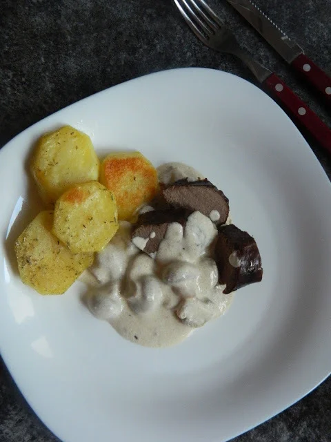 Venison tenderloin with mushroom sauce