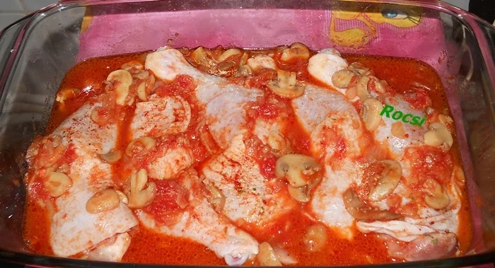 Oven-Baked Chicken Thighs with Mushrooms and Tomato Sauce