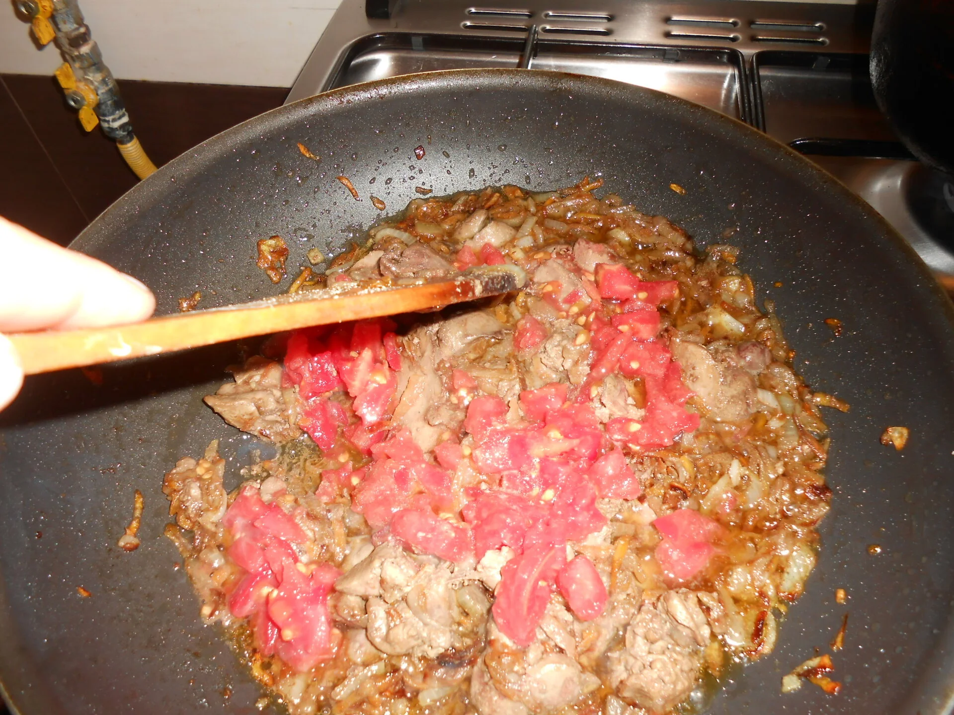 Chicken liver stir-fried with caramelized vegetables