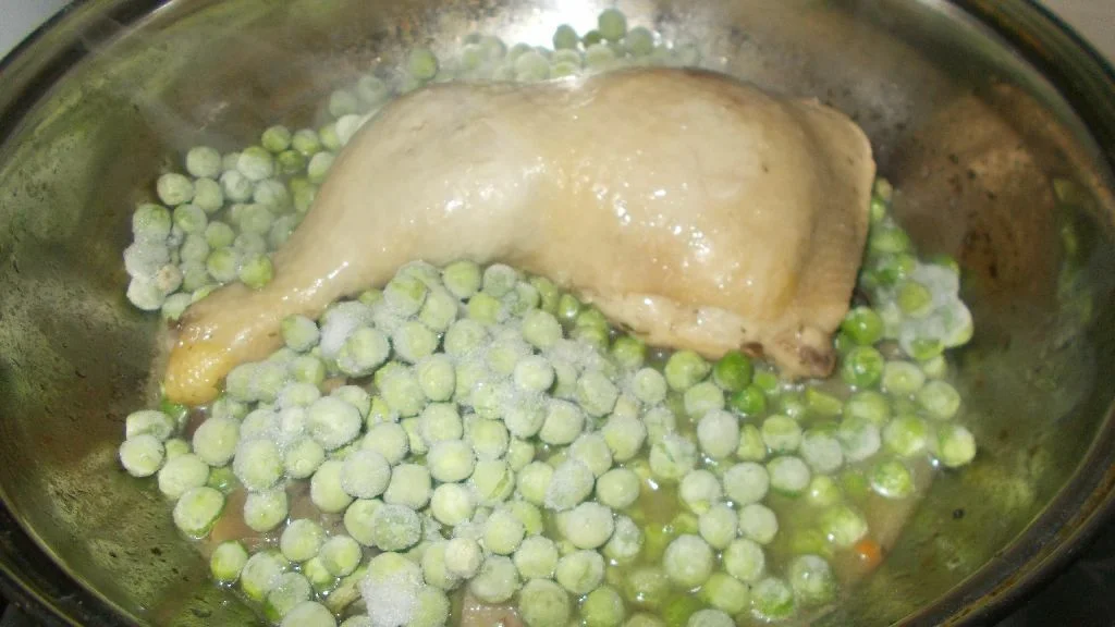 chicken chicken thigh with peas and mushrooms mushrooms pea pea food with chicken pulp
