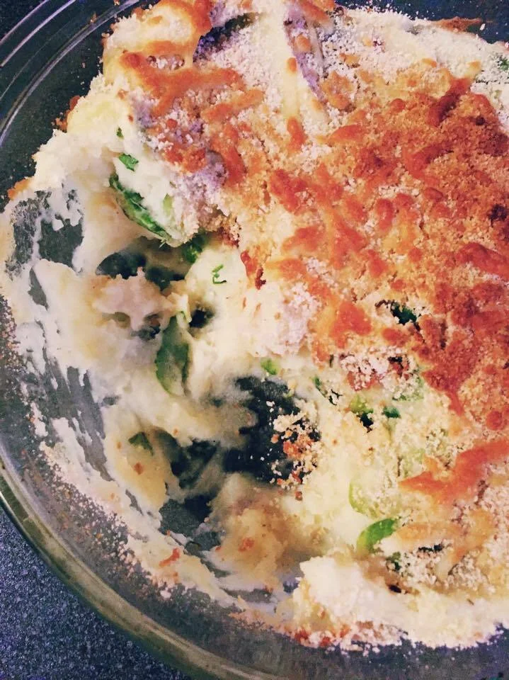 Delicious Recipe for Gratinated Mashed Potatoes with Chorizo and Brussels Sprouts