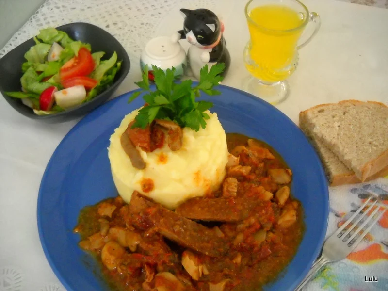 Te invit să descoperi o rețetă delicioasă și reconfortantă: Cotlete de porc cu șuncă și ciuperci. Această mâncare este o combinație savuroasă de ingrediente, ce îmbină aromele intense ale cărnii cu… EN: View full recipe: Gypsy chop