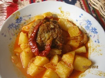 Meatballs with Potatoes in Spicy Sauce