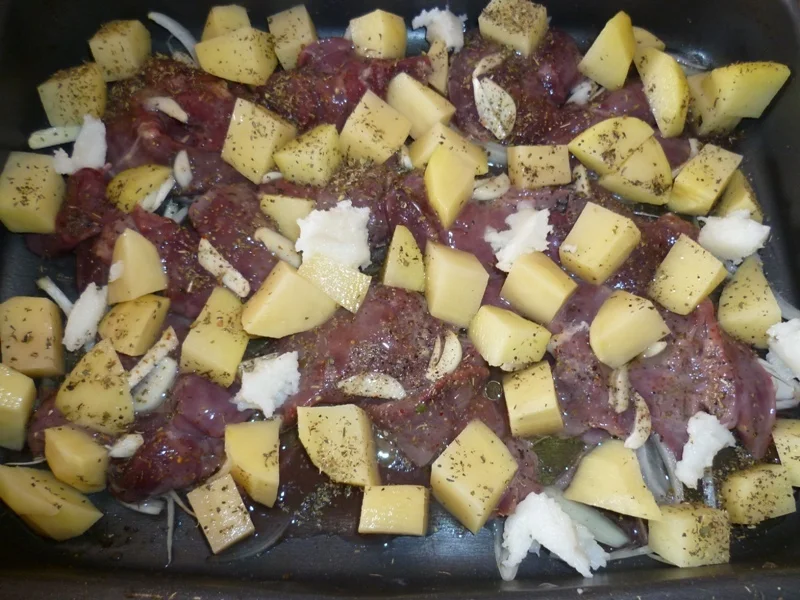 Oven-baked chicken liver with aromatic potatoes