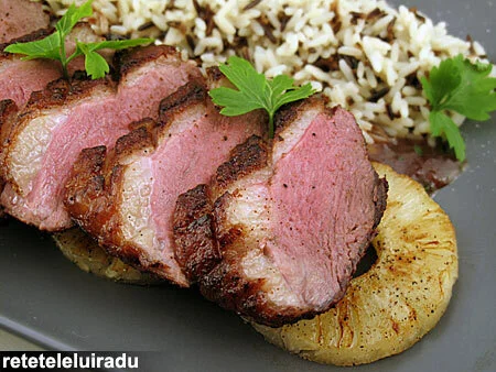 Discover the culinary charm of duck breast, a refined delicacy that perfectly combines the savory flavor of juicy meat with the sweetness of caramelized pineapple and a spicy sauce that will delight your senses. This recipe is not just a meal, but a gastronomic experience that will transport you to a world full of… EN: View full recipe: Pineapple rate