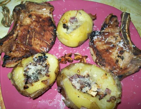 Pork chop with stuffed potatoes