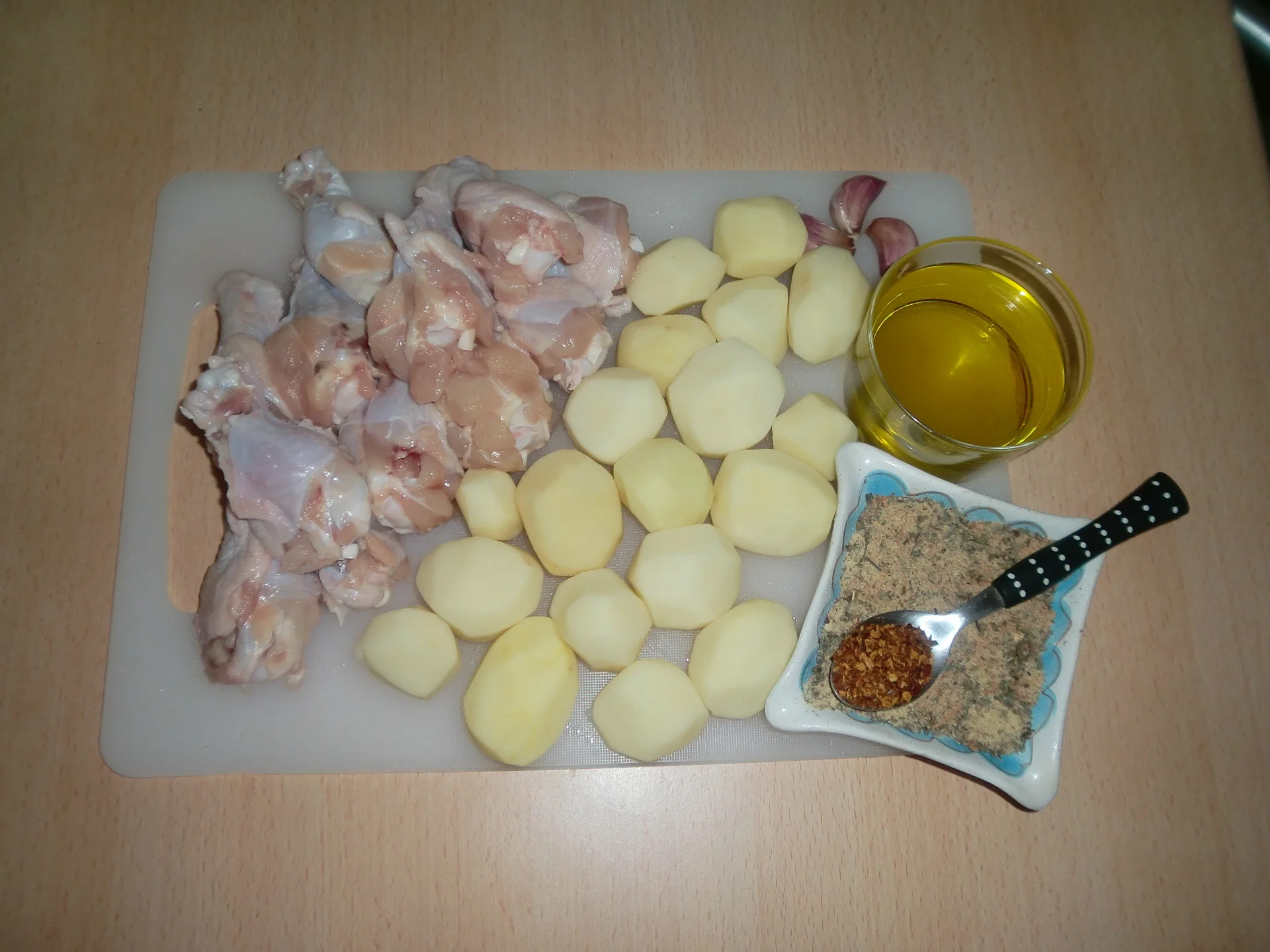 Spicy Baked Chicken Thighs in Ceramic Dish with Fried Potatoes – An Unforgettable Recipe