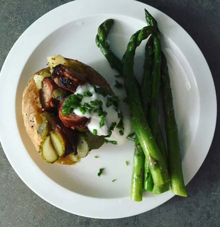 Stuffed potato with sausage in Bilthoven style