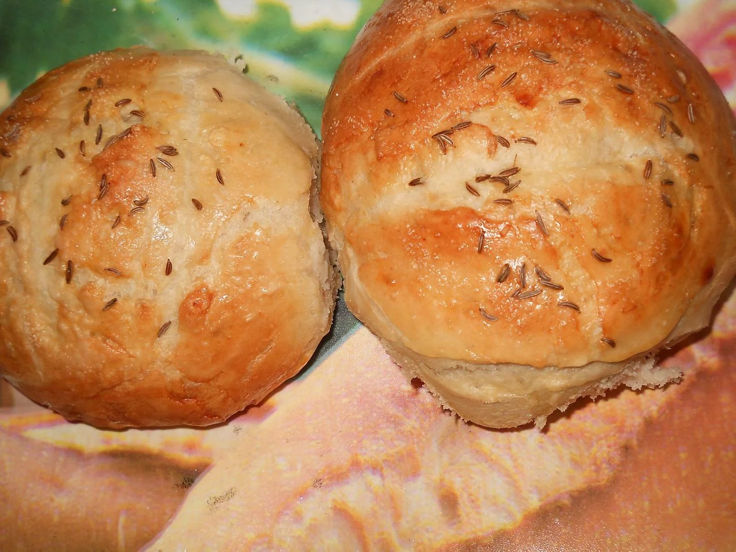 Fluffy rolls with butter and caraway