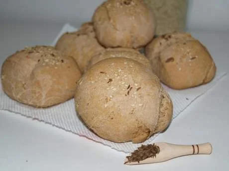 Buns with two types of flour, sunflower seeds, and cumin