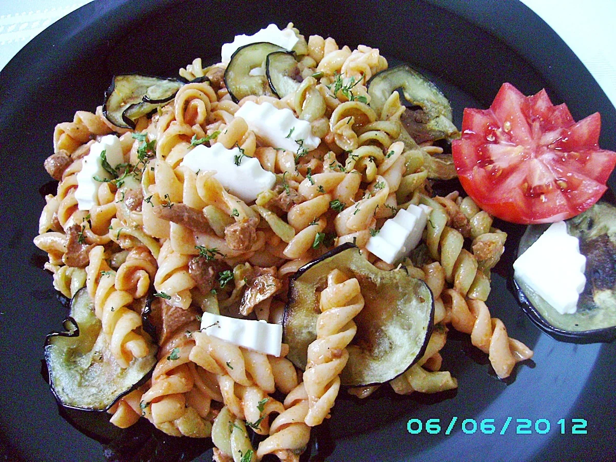 Multicolored Pasta with Eggplant and Mushrooms – A Tasty and Light Salad