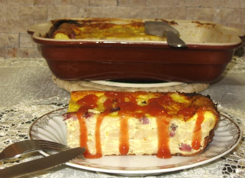 Delicious Pasta Pudding with Cottage Cheese and Beef Ham