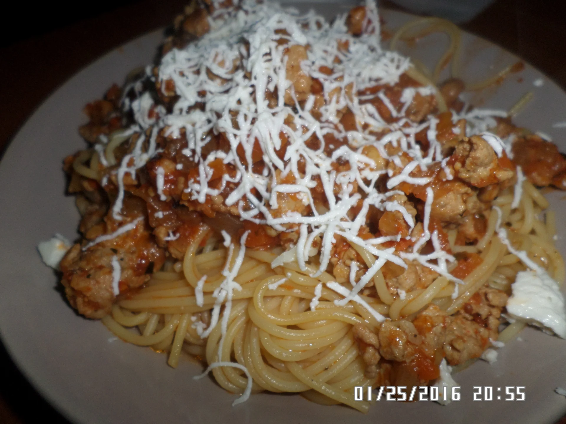 Spaghetti with minced meat and sauce