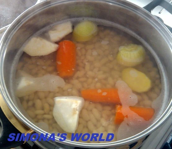 Beans stewed with smoked meat
