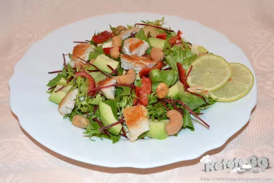 RO: Salata cu pui, avocado si cajuES: Ensalada de pollo con aguacate y anacardosFR: Salade de poulet avec avocat et noix de cajouDE: Hühnchensalat mit Avocado und CashewnüssenIT: Insalata di pollo con avocado e anacardiPL: Sałatka z kurczakiem, awokado i nerkowcamiPT: Salada de frango com abacate e cajuTR: Avokado ve kaju fıstıklı tavuk salatasıEL: Σαλάτα κοτόπουλου με αβοκάντο και κάσιουςRU: Салат с курицей, авокадо и кешьюZH: 鸡肉沙拉配牛油果和腰果JA: アボカドとカシューナッツのチキンサラダHI: चिकन सलाद, एवोकाडो और काजू के साथ