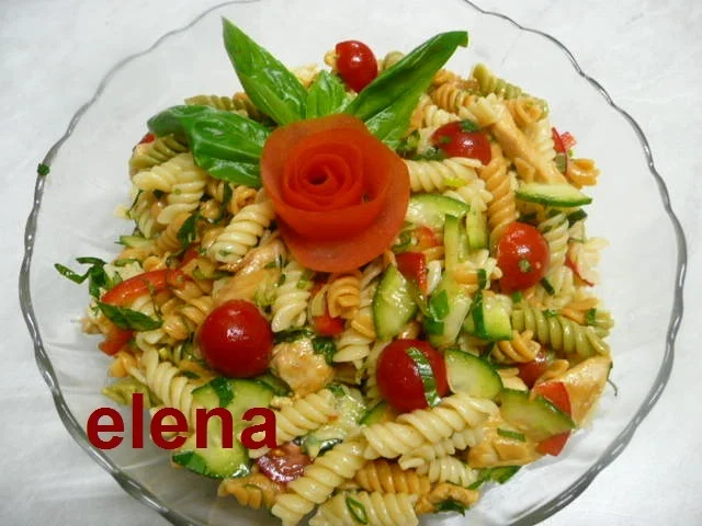 Pasta salad with chicken and basil