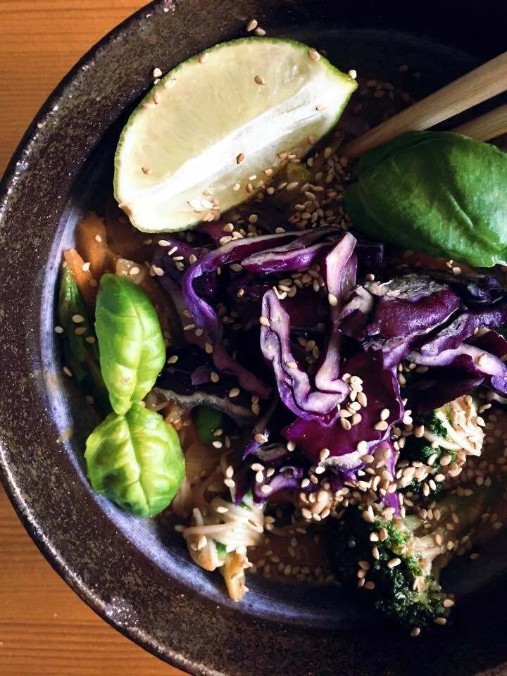 coconut milk thai red curry with asparagus and noodles