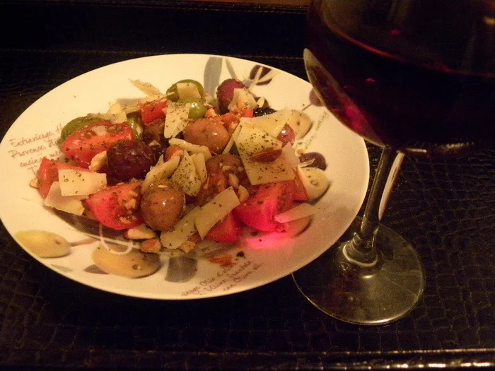 It’s a beautiful evening, and pleasant music plays in the background. What could be more relaxing than indulging in a simple yet sophisticated salad that perfectly complements a glass of wine? This tomato salad with olives,… EN: View full recipe: Tomato salad with olives