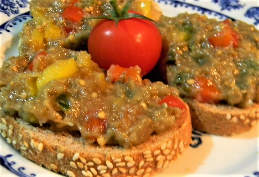Delicious eggplant salad recipe with peppers and cumin