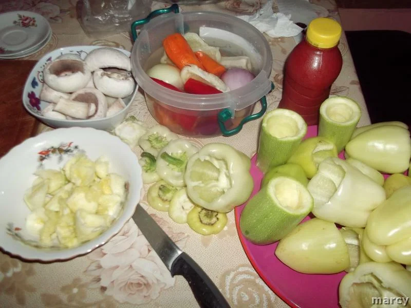 RO: Ardei si dovlecei umpluti (de post)ES: Pimientos y calabacines rellenos (veganos)FR: Poivrons et courgettes farcis (végétalien)DE: Gefüllte Paprika und Zucchini (vegan)IT: Peperoni e zucchine ripieni (vegani)PL: Faszerowane papryki i cukinie (wegańskie)PT: Pimentos e abobrinhas recheados (veganos)TR: Dolgulu biber ve kabak (vegan)EL: Γεμιστές πιπεριές και κολοκυθάκια (vegan)RU: Фаршированные перцы и цукини (веганские)ZH: 填充的辣椒和西葫芦(纯素)JA: 詰め物をしたピーマンとズッキーニ(ヴィーガン)HI: भरवां शिमला मिर्च और तोरी (शाकाहारी)