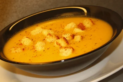 Carrot and Potato Cream Soup with Croutons (Vegan)