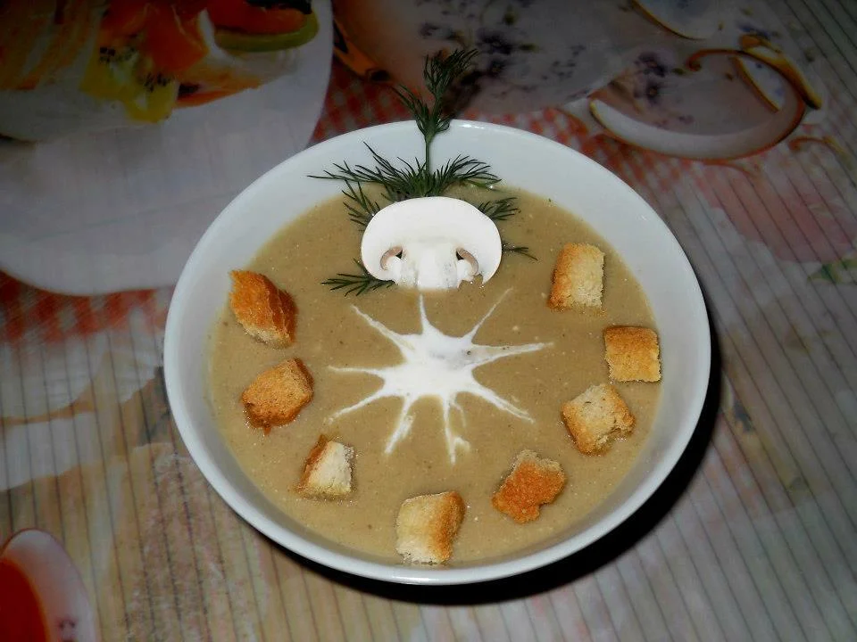 Mushroom Cream Soup with Sour Cream and Croutons