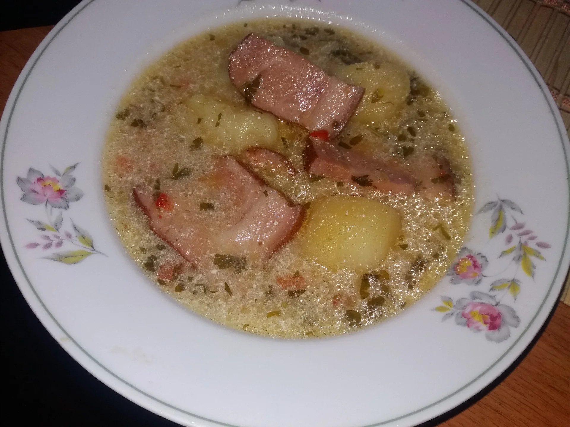 RO: Ciorba cu afumatura si cartofiES: Sopa de carne ahumada y patatasFR: Soupe de viande fumée et pommes de terreDE: Rauchfleisch- und KartoffelsuppeIT: Zuppa di carne affumicata e patatePL: Zupa z wędzonym mięsem i ziemniakamiPT: Sopa de carne defumada e batatasTR: Aromalı et ve patates çorbasıEL: Σούπα με καπνιστό κρέας και πατάτεςRU: Суп с копченым мясом и картошкойZH: 熏肉土豆汤JA: 燻製肉とジャガイモのスープHI: धुएँ में पकी मांस और आलू का सूप