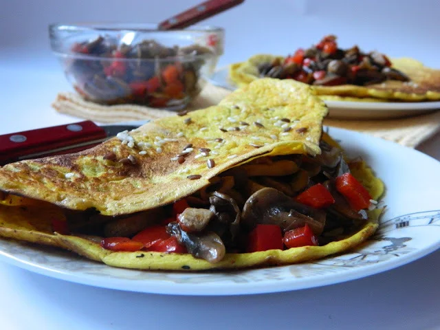 Captivating Chickpea Flour Pancake Recipe with Mushrooms and Bell Peppers